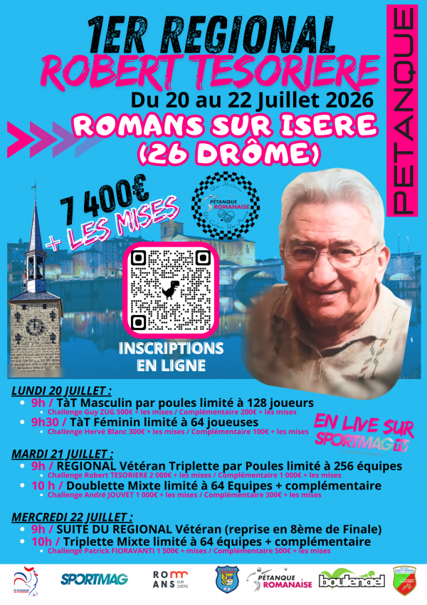 - 📍 Lieu : Stade de Pétanque Roger Blachon, place Maurice Michel 26100 Romans sur Isère.